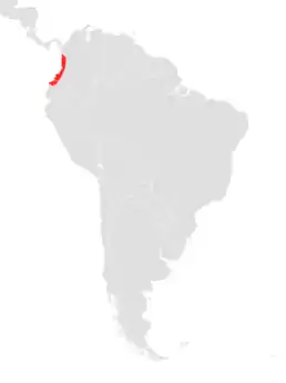 Країни поширення: Колумбія, Еквадор. Мешкає на висотах 0-500 м у вологих місцях проживання. Обмежений первинними дощовими лісами.