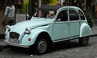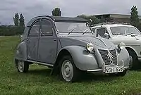 Citroën 2CV (фр. deux chevaux vapeur — дві кінські сили, букв. дві парові коні; читається Дешво́ — два коні, дві «конячки») — мікролітражний автомобіль від Citroën, що випускався з 1949 по 1990 рік[1]. Індекс в назві позначає умовну потужність двигуна (фр. CV, chevaux vapeur), яка розраховується за його об'ємом, що оподатковується (фр. chevaux fiscaux, cheval fiscal — транспортним податком, букв. кінський податок) на автомобілі в тодішній Франції, в той час, як реальна потужність (фр. cheval-vapeur) початкового варіанту — 9 к.с. (фр. ch). У Франції цей автомобіль зіграв ту ж роль, що Форд Т в США або Фольксваген Жук в Німеччині: «посадив за кермо» націю. У конструкції реалізовані багато оригінальних і прогресивних технічних рішень, наприклад, передній привод, що незвично для машин довоєнної розробки. У той же час нарочито спрощена і здешевлена машина несла печать непрестижності, подібно до мотоколясок післявоєнної Європи або «горбатому Запорожцю» в СРСР. 2CV проектувався як наддоступний за ціною, простий в обслуговуванні та ремонті, утилітарний автомобіль, придатний для невпорядкованих доріг і перевезення невеликих вантажів — він повинен був замінити французькому фермерові коні і віз, городянину — велосипед і візника. Машина отримала легкообслуговуваний двигун, регульовану торсіонну підвіску, відносно великий кліренс. Знімний матерчатий дах дозволяв перевозити негабаритний вантаж.