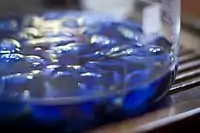 Сушені квіти використовують для зафарбовування їжі (рис) та напоїв (чай) у синій колір. У Таїланді з квітів Clitoria ternatea та цимбопогону (лимонна трава) виготовляють чай. Додавання соку лимону змінює колір чаю на рожевий.[4]