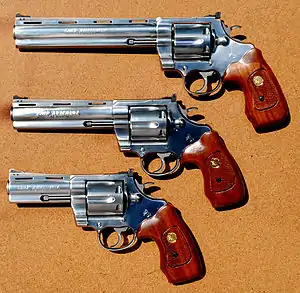 ![]() Три револьвера .44 Magnum Colt Anaconda з різними стволами | |