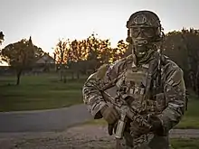 Норвегія: Використовується Forsvarets Spesialkommando (сухопутні війська Норвегії)[37] та Marinejegerkommandoen (військово-морські сили Норвегії).[38] Також використовується у різних підрозділах поліції Норвегії, в тому числі підрозділ спеціального призначення Beredskapstroppen Delta,[39][40] Королівський поліцейський ескорт та норвезька поліційна служба безпеки.[41] -