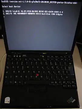 - SeaBIOS — вільна реалізація BIOS, що підтримує стандартні системні виклики. Дозволяє завантажувати операційну систему з твердого диска або CD/DVD дисковода. На даний момент випробувана з ОС Linux, NetBSD, FreeDOS, і Windows XP/Vista/7. Завантаження інших x86-сумісних операційних систем також повинне працювати.