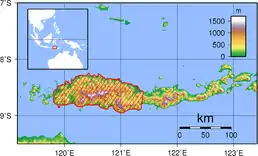 Це ендемік островів Флорес і Рінка (Індонезія). Мешкає у напіввічнозелених лісах і деградованих, вологих, листяних мусонних лісах (особливо вздовж водотоків) від рівня моря до 950 м. У прибережних районах зустрічається у відкритих бамбуках і відкритих мусонних лісах або чагарниках, які являють собою дуже суху, злегка лісисту місцевість. Вид, очевидно, потерпає від деякої деградації лісів і годується на узліссі, але його відсутність у невеликих реліктових лісових масивах припускає, що, можливо, вид не добре адаптується до фрагментації середовища проживання.