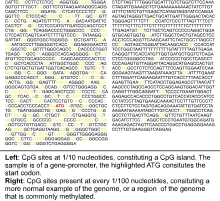 Функціонально, CpG-острівці пов'язані з явищем метилювання ДНК по цитозину. Більша частина цитозину, до 80 % геному хребетних, метильована і лежить поза послідовністю нуклеотидів CpG, тоді як CpG-острівці здебільшого неметильовані та містять модифікацію гістонів H3K4me3 — один з маркерів еухроматину (див. табл. у Порівняння еу- та гетерохроматину)[2]. У той же час метилювання CpG-острівців в сайтах старту транскрипції призводить до заглушення відповідних генів на довгий час, прикладами можуть бути імпринтні гени та гени на неактивній X-хромосомі. Також характер метилювання CpG-острівців може бути тканинноспецифічним[1]