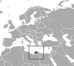 Ендемік області Киренаїка в Лівії. Зустрічається від рівня моря до 200 чи 300 м. Середовище проживання включає середземноморську рослинність, у тому числі і прибережні скелясті райони. Цілком ймовірно, вид можна знайти в деградованих місцях проживання.