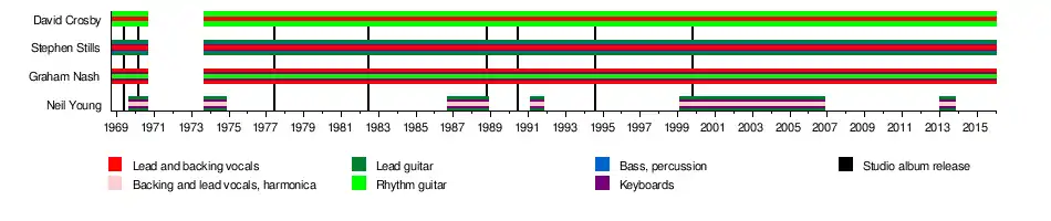- Стівен Стіллз — вокал та бек-вокал, соло- і ритм-гітара, бас, клавішні, перкусія (1968—1970, 1973—2015)