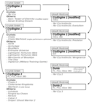 CryEngine — це гральний рушій розроблений німецькою компанією Crytek, який вперше був використаний у відеогрі Far Cry. Він був створений як технологічна демонстрація GeForce 3 від Nvidia. Ubisoft же має модифіковану версію CryEngine у грі Far Cry, який називається «Dunia Engine».