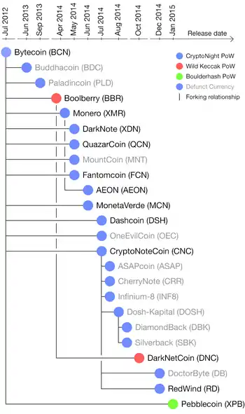 Платформа CryptoNote використовувалась для створення багатьох криптовалют. CryptoNote Foundation заохочує розробників до клонування технології. Час підтвердження транзакції, загальна кількість монет та логіка доведення виконаної роботи можуть змінюватись в форках. Було зроблено кілька спроб змінити основний протокол: Boolberry додав псевдоніми адрес, а DigitalNote додав приватні повідомлення.