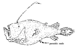![]() Самиця та паразитуючий самець Cryptopsaras couesii | ||||||||||||||||||||||||