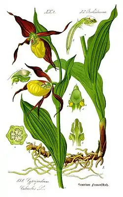 ![]() Зозулині черевички Ботанічна ілюстрація із книги О. В. Томе «Flora von Deutschland, Österreich und der Schweiz», 1885 | ||||||||||||||||