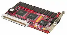 NuBus відеокарта з вилкою 3 × 32 DIN 41612 (біла, ліворуч на передньому плані)