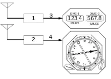 Система DME складається з УКХ-приймача/передавача (запитувач) в ПС та УКХ-транспондер на землі.