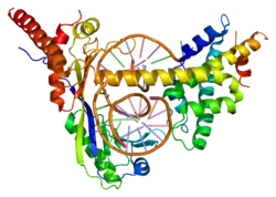 Кодований геном білок за функціями належить до репресорів, фосфопротеїнів. Задіяний у таких біологічних процесах як транскрипція, регуляція транскрипції, поліморфізм, ацетиляція. Білок має сайт для зв'язування з ДНК. Локалізований у ядрі.