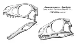 Daemonosaurus chauliodus — динозавр з пізнього тріасу. Нового, раніше невідомого науці динозавра виявили американські палеонтологи. Череп з гострими зубами, кілька шийних хребців і уламки ребер знайшли у так званому Кар'єрі целофізіса (Coelophysis Quarry) в районі Ранчо Примари (Ghost Ranch) в штаті Нью-Мексико. Цей район зі зловісною назвою добре відомий палеонтологам, там неодноразово знаходили скелети нових видів динозаврів, що жили в тріасовому періоді. Сам кар'єр названий на честь тріасового динозавра целофізіса (Coelophysis), кістки якого там зустрічаються досить часто.