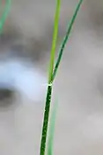 Не має кореневищ або столонів. Стебла довжиною 20–80 см. Бокові гілки відсутні. Листя в основному базальне. Листові пластини вигнуті, довжиною 7–15 см; шириною 1–2 мм. Суцвіття — волоть. Волоть лінійна довжиною 2–5 см з кількома колосками. Колоски одиничні. Родючі колоски з квітоніжками. Квітоніжки довжиною 1-3 мм. Колоски довжиною 10–13 мм, з 4–9 родючими квіточками, розпадаються при зрілості. Колоскові луски стійкі, подібні, перевищують верхівки квітів, тонші, ніж родюча лема. Колоскові луски ланцетні, довжиною 10–13 мм, без кіля, 3–5-жильні, верхівка загострена. Родюча лема еліптична, 3.5–5 мм довжиною, папероподібна, без кіля; 5-жильна. Пиляків 3.