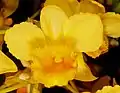 Епіфітна рослина має густі запашні суцвіття, що досягають 25 см та виростають з основи стебла. Губи квітів яскраво оранжеві, інші частини квітки — жовті.