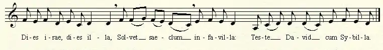 Традиційний григоріанський хорал на тему Dies irae звучить так: