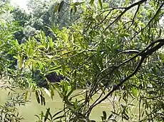 Вічнозелене дерево, яке виростає приблизно до 12 метрів заввишки. Дводомний вид, якщо потрібні плоди і насіння, необхідно вирощувати як чоловічі, так і жіночі форми. Кора сірувата, луската; з червонуватим відблиском. Гілки стрункі, циліндричні, голі. Листя прості, чергові, дистигенні; черешок 0,4-0,9 см завдовжки, голий, зверху канальцевий. Квіти одностатеві; чоловічі квітки в пахвових цимах, плодоножках; жіночі великі, одиночні, пахвові. Плід, кулястий, до 2,5 см в діаметрі.