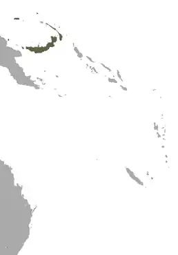 Країни поширення: Папуа Нова Гвінея — Архіпелаг Бісмарка і Острови Адміралтейства. Висотне поширення: від рівня моря до 1500 м над рівнем моря.