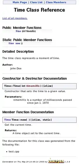 Приклад програми мовою C++ (згенерована документація — на рисунку):