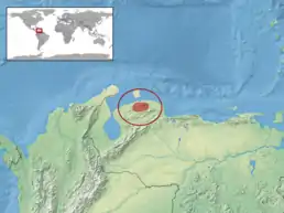 Цей вид є ендеміком Венесуели, зустрічається у штаті Фалькон. Більшість зразків були знайдені протягом 45 км на схід і південний схід від міста Санта-Ана-де-Коро і цей вид вважається ендемічним для цієї області.