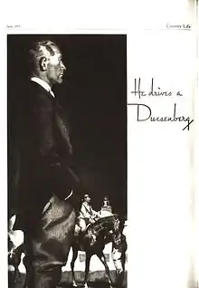 До речі, в 30-ті роки одна з реклам "Дюзенберг" була у вигляді джентльмена, який сидить в кабінеті свого особняка, і під картинкою був підпис: "Він їздить на "Дюзенберг"".