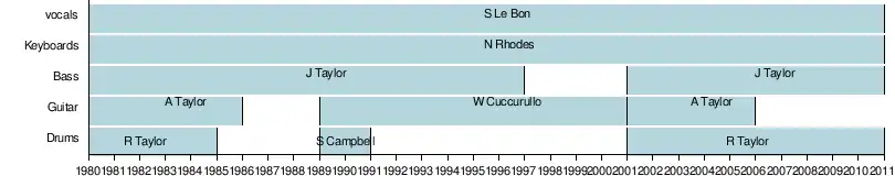 Гурт був створений клавішником Ніком Роудсом і басистом Джоном Тейлором, пізніше до них приєднався барабанщик Роджер Тейлор, а після численних кадрових змін, гітарист Енді Тейлор і вокаліст Саймон Ле Бон. Вп'ятьох вони становили найуспішніший склад групи