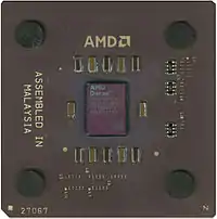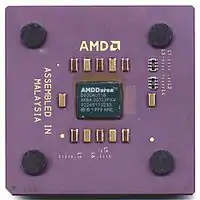 - AMD Athlon, Athlon XP. Призначалися для ринку високопродуктивних комп'ютерів. Випереджали Duron за рахунок більшого обсягу кеша другого рівня, а потім і за рахунок вищої частоти системної шини[14]..
