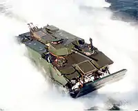 У передній частині розміщені водій, командир і стрілець 30-мм автоматичної гармати у вежі. Для переміщення на воді елементи приводу зміщено до центру корпусу. У задньому десантному відділенні може розміститись 17 морпіхів чи 2300 кг вантажу. Для швидкого переміщення на воді використовують два потужні водомети. Рушій Shrouded Honeywell створює на воді 2800 к.с. тяги. У режимі значної швидкості гідропневматична підвіска піднімає вгору і ховає за борти гусениці з опорними котками, спереду опускається спеціальний щит для зменшення опору води, по бортах і на кормі піднімаються елементи для збільшення площі корпусу, що дозволяє машині піднятись з води і у режимі глісера розвинути до 46 км/год. Захист від ЗМУ забезпечує система надлишкового тиску з фільтрами. Для зменшення ваги застосовано алюмінієву броню.