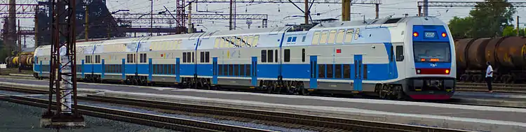 ![]() Електропоїзд EJ675-002 на станції Ізюм Південної залізниці | |