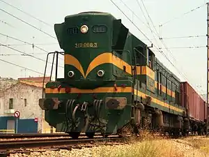 Тепловоз класу 661 залізниць Сербії з інтермодальним вантажним поїздом на шляху від болгарського кордону з-під Димитровграда до Ніша.
