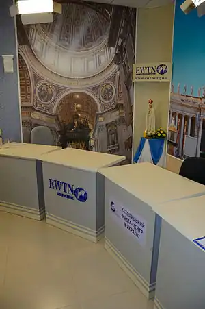 Починаючи з 5 червня 2012 р. EWTN транслюється у м. Хмельницькому в мережі «Воля-кабель» в пакеті «DTV Start» (ЦТВ) на частоті 346 МГц.