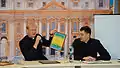 Отець Олексій Самсонов (зліва) і отець Павло Вишковський. ОМІ (справа) в студії укр. EWTN