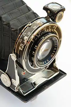 - Об'єктиви. До 1914 року компанія Eastman Kodak на свої фотоапарати встановлювала найпростіші меніскові лінзи, або об'єктиви сторонніх виробників, наприклад Rapid Rectilinear компанії Bausch & Lomb. Eastman Kodak випускав об'єктиви не тільки для фотоапаратів, а й для проекторів, збільшувачів, слайд проекторів і т. д.