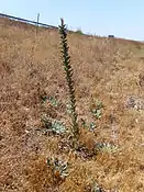 Дво- або багаторічна рослина. Стебла до 250 см, прямостоячі, прості або слабо розгалужені. Майже вся рослина має колюче і щетинисте волосся. Прикоренева розетка листя 37 × 5,5 см, вузько еліптичні або обернено-ланцетовиді; вище до 10 × 2 см, лінійно-ланцетні або ланцетні. Колосоподібне суцвіття займає більше половини стебла. Віночок 15–20 мм, волохатий, кольору від рожевого до індиго. Цвіте і плодоносить з травня по серпень. Горішки 2,5–3,5 × 2–2,5 мм, коричневі.
