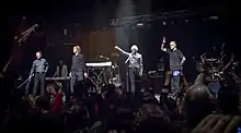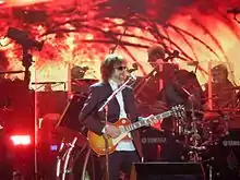 ![]() ELO виступають в прямому ефірі у 1981 році під час свого концерту Time Tour. Зліва: Джефф Лінн, Луїс Кларк (на фотографії - затемнений), Луїс Кларк, Бів Бівен та Річард Тенді | |