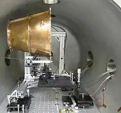 Тестування проводилося на крутильному маятнику для малих сил, який здатний виявляти сили в один мікроньютон, в герметичній вакуумній камері з нержавіючої сталі, але при температурі навколишнього повітря та атмосферному тиску, оскільки радіочастотний підсилювач використовує електролітичний конденсатор, не здатний працювати в жорсткому вакуумі[4].