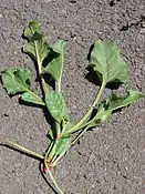 Однорічна трав'яниста рослина 30–60 (рідко до 80) см заввишки. Корінь товстий і соковитий. Стебла червонуваті. Листки прості за формою, нагадують листя шпинату. Суцвіття містять 1–8 чоловічих або 2–8 жіночих квіток. Квітки мають діаметр від 5 до 6 мм. Квітки різної статі згруповані окремо на тій же рослині. Рослина виробляє багато насіння як у кластерах уздовж гілок, так і біля основи стебла. Плодові оцвітини 5–6 × 5–6 мм, з колючками. Тригранні, глянцеві сім'янки 4–5 × 2–3 мм. Наприкінці життя рослини корінь висихає і тягне насіння біля основи стебла в землю.