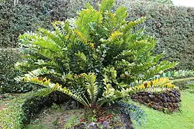 Рослини деревовиді або безстовбурні; стовбур 1 м заввишки, 25–30 см діаметром. Листки довгочерешкові, довжиною 100—200 см, темно-зелені, дуже блискучі; хребет зелений, троха зігнутий; черешок прямий, з 1–6 шипами. Листові фрагменти яйцеподібні; середні — довжиною 15 см, 35–50 мм завширшки. Пилкові шишки 1–10, веретеновиді, червоні, довжиною 40–50 см, 8–10 см діаметром. Насіннєві шишки 1–5, яйцеподібні, червоні, довжиною 25–50 см, 20–40 см діаметром. Насіння довгасте, довжиною 45–50 мм, шириною 15–20 мм, саркотеста червона.