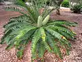 Рослини деревовиді; стовбур 3 м заввишки, 80 см діаметром. Листки довжиною 100—150 см, темно-зелені, сильно блискучі; хребет зелений, прямий, жорсткий; черешок прямий, з 6–12 колючками. Листові фрагменти ланцетні; середні — 15–20 см завдовжки, 20–30 мм завширшки. Пилкові шишки 1–3, вузькояйцевиді, жовті, довжиною 25–30 см, 6–8 см діаметром. Насіннєві шишки 1–3, яйцеподібні, жовті, довжиною 26–30 см, 14–16 см діаметром. Насіння довгасте, довжиною 40–60 мм, шириною 20–25 мм, саркотеста червона або жовта.