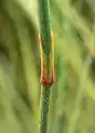 Це тонкий чагарник з гілками, які зеленуваті, коли нові, а з віком набувають жовтувато-сірого кольору і мають тонкі поздовжні канавки на їх поверхні. Кора стає сіро-коричневою, і з нерегулярними тріщинами. Висота 0.25-1 метр з подібним розповсюдженням. Крихітні листки ростуть у вузлах на гілках, стають сухими під час засухи, й руйнуючись залишають коричневі хребти. Чоловічі рослини виробляють шишки зі скупченнями пилку у вузлах, а жіночі рослини виробляють у яйцеподібні шишки кожна близько 1 см завдовжки, з травня по червень.[1]