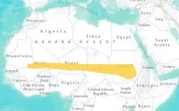 Країни поширення: Малі, Судан. Населяє зарості акації, сухі чагарники, сухі луки і пустельні місця проживання.