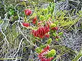 Непримітний гіллястий кущ з дрібним голкоподібним листям, що стає помітним під час цвітіння у зимовий вологий сезон. Довгі (5-15 см) звисаючі квіти різного кольору (червоний, оранжевий, зелений, жовтий) запилюються птахами.