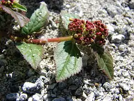 Це однорічна або багаторічна трава зі стрижневим коренем від тонкого до потовщеного. Стебла, як правило, від прямовисних до висхідних, рідше розпростерті, 10–50(75) см, волосисті. Листки супротивні; прилистки нерозділені або розділені на 2–4 вузько-дельта-лінійно-шилоподібні сегменти, 0.5–1.8(2.9) мм, волосисті; ніжка листка 1–3 мм мм, волосисті; листові пластини від яйцюватої до ромбічної форми, 7–43 × 3–18 см, основа сильно асиметрична, краї від тонкозубчастих до подвійнозубчастих, верхівка гостра, поверхні часто з червоною плямою в центрі, зазвичай волосисті, рідко ±голі. Період цвітіння та плодоношення: круглий рік. Плоди від майже округлих до злегка сплюснутих, 1–1.3 × 1.1–1.6 мм, дрібноволосисті. Насіння від коричнювато-червоного до помаранчевого або рожевого, вузькояйцеподібне, 4-кутове в перетині, 0.7–0.9 × 0.5–0.7 мм, зазвичай нерівне, рідко майже гладке[1].