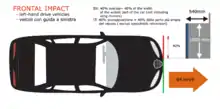 - Лобовий удар зі зміщенням. Виконується на швидкості 64 км/год (40 миль/год) у перешкоду, що деформується. На задньому сидінні розміщені манекени, що імітують трирічну та півторарічну дитину.