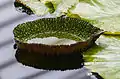 Близька за будовою з великою амазонською Victoria amazonica. Листя округлощитоподібне, з бугристою поверхнею та помітним жилкуванням, покрите шипами, досягає 1,5 м в діаметрі, має пурпурний низ. Квіти, схожі на воланчик, 6 см в діаметрі, мають пелюстки білі всередині та фіолетові ззовні, відкриваються під водою. Рослина самозапилюється до відкриття квіток. Усі частини рослини покриті гострими шипами.