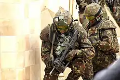- Бойовий шолом компанії MSA Gallet на основі органотекстоліту із вбудованою системою зв'язку і оптоелектронною системою обробки і відображення інформації. Оптоелектронна система включає нашлемну камеру, інформаційний OLED дисплей і комунікаційну систему для обміну інформацією між бійцями підрозділів. Система зв'язку побудовано на базі технології DECT. Шолом також має вбудовану захисну маску для використання у разі застосування супротивником зброї масового ураження і дозволяє бійцеві, не знімаючи її, приймати воду і їжу;
