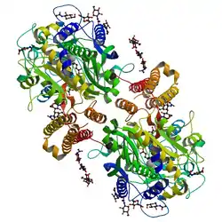 - Mesters J.R., Henning K., Hilgenfeld R. (2007). Human glutamate carboxypeptidase II inhibition: structures of GCPII in complex with two potent inhibitors, quisqualate and 2-PMPA.. Acta Crystallogr. D 63: 508 — 513. PubMed DOI:10.1107/S090744490700902X