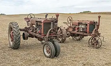 Трактори «Farmall Regular» 1930 року (з гумовими шинами) та 1927 року (із залізними колесами)