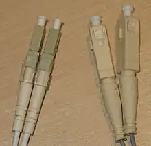 Коли технологія тільки була розроблена, вона підтримувала лише оптоволокно (fiber); підтримку мідних кабелів було додано пізніше. Незважаючи на це, комітет розробки вирішив зберегти ім’я, але перейти на британський правопис fibre в назві стандарту. Американське написання fiber стосується лише оптичних кабелів.[1] Мережу Fibre Channel можна прокладати як по мідних кабелях, так і по оптоволокні.